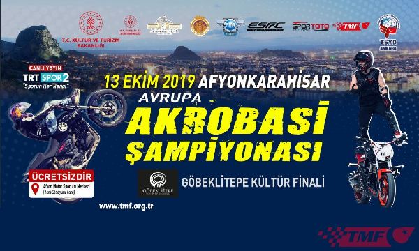 Dünya Şampiyonası’ndaki başarılı organizasyonun ardından Uluslararası Motosiklet Federasyonu (FIM) tarafından Avrupa Akrobasi Şampiyonası’nın son ayağı olan Göbeklitepe Kültür Finali Afyonkarahisar’a verildi. Gençlik ve Spor Bakanlığı, Kültür ve Turizm Bakanlığı ve Afyonkarahisar Belediyesi’nin destekleriyle TSYD Ankara'nın ev sahipliğinde Türkiye Motosiklet Federasyonu tarafından yapılacak organizasyonda motosiklet gösteri ustaları, Avrupa Motosiklet Akrobasi Şampiyonası Göbeklitepe Kültür Finali'nde şampiyonluk için mücadele edecekler.