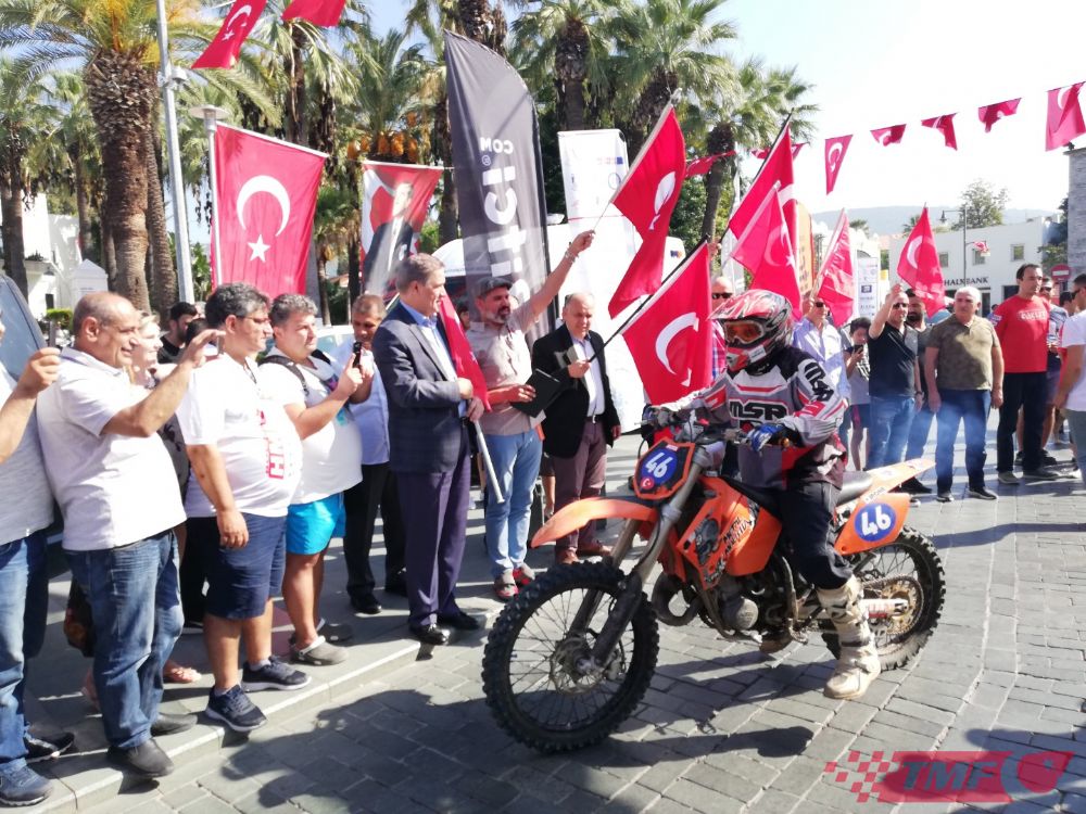 Türkiye Motosiklet Federasyonu (TMF) ve Halikarnas Motor Sporları Kulübünce düzenlenen Türkiye Süper Enduro Şampiyonası’na 45 sporcu katıldı. Final yarışlarını Bodrum Kaymakamı Bekir Yılmaz, TMF Başkanı Bekir Yunus Uçar, TMF Asbaşkanı Mahmut Nedim Akülke, TMF Yönetim Kurulu Üyesi Sadık Özdemir, ilçe protokolü ile binlerce yarışsever izledi.
