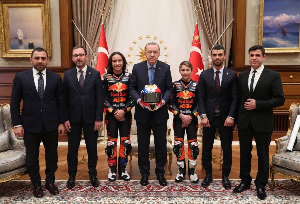 İlk kez çıktığı Moto3 yarışını birinci bitirerek Moto3 Grand Prix tarihinin yarış kazanan en genç sporcusu olan 15 yaşındaki milli sporcumuz Can Öncü ve ikizi Deniz Öncü, Cumhurbaşkanı Erdoğan'a adının yazılı olduğu özel tasarım kaskı hediye etti.