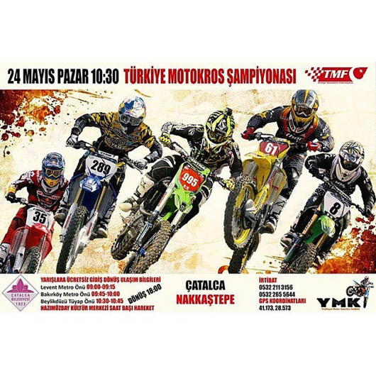 Türkiye Motosiklet Federasyonu’nun 2015 takviminde yer alan Türkiye Motokros Şampiyonası'nın üçüncü ayağı 23-24 Mayıs tarihlerinde Çatalca’da yapılacak. Spor Toto Motokros Parkuru'nda koşulacak sezonun Üçüncü Ayak yarışına İstanbul, Ankara, İzmir, Muğla, Antalya, Sakarya ve Bursa başta olmak üzere bir çok ilden sporcu katılacak. Yeditepe Motor Sporları Kulübü tarafından Çatalca Nakkaş mahallesinde yapılacak olan Türkiye Şampiyonası, MX, MX1, MX2, MX2 Junior, 85cc, 65cc, 50cc, ATV ve Veteran sınıflarında koşulacak.Dünya ve Avrupa standartlarına uygun yapılan Spor Toto Motokros Parkuru'nda yüksekliği 6 metreyi bulan atlayışların gerçekleşeceği yarışa çok sayıda izleyicinin gelmesi bekleniyor. Toprak parkurda, nefes kesen mücadeleler, izleyiciler için gerçek bir şölene sahne olacak.