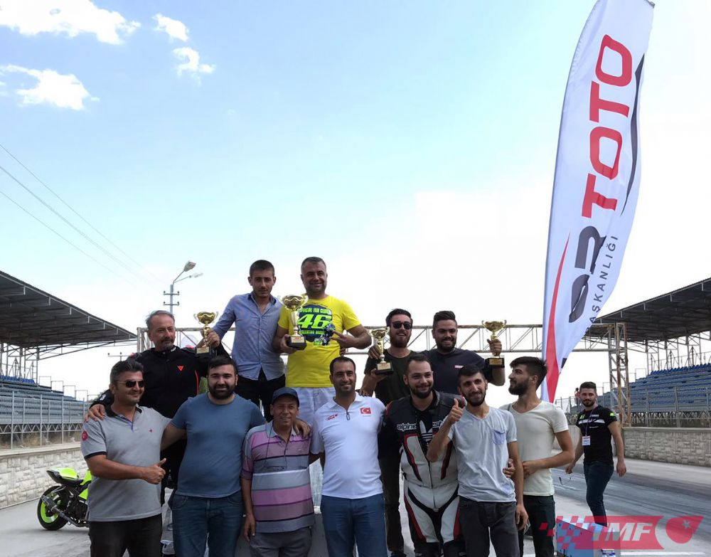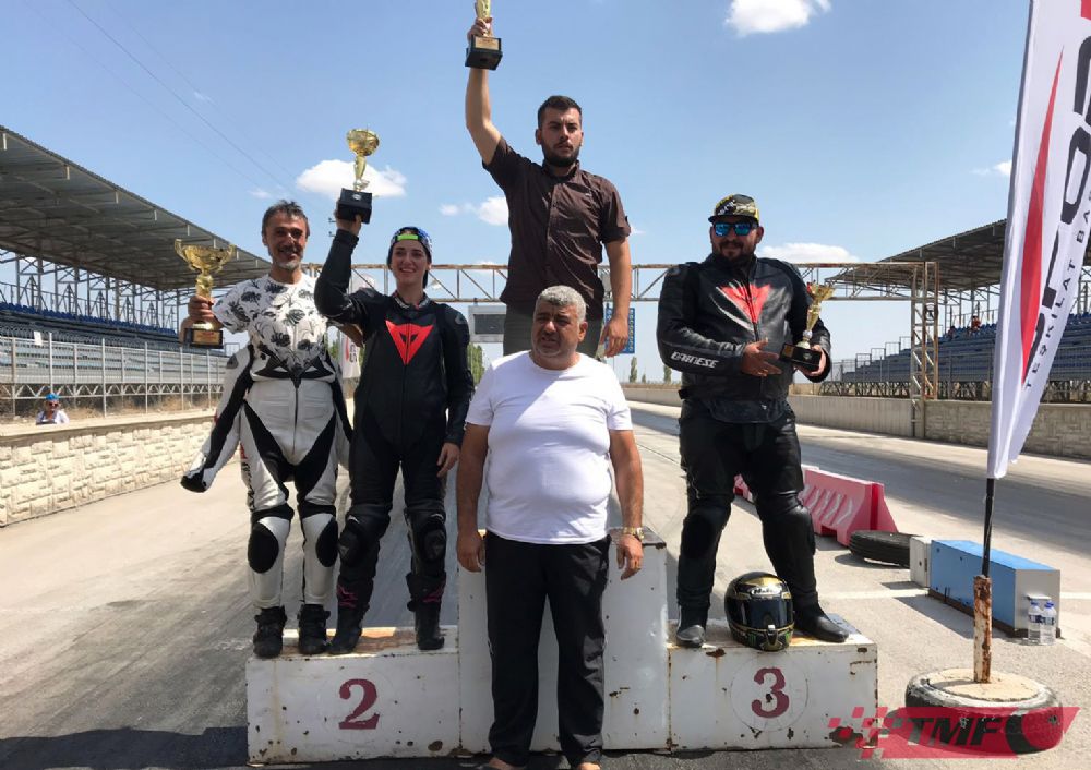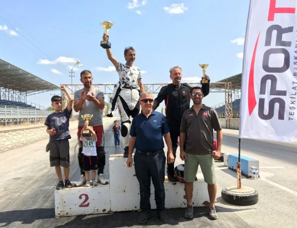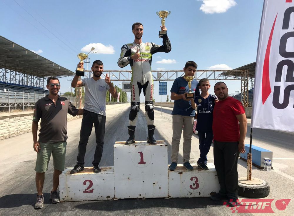 Saraçoğlu Spor Tesisleri Drag Pisti’ndeki şampiyonada dereceye giren sporcular kupalarını Türkiye Bisiklet Federasyonu Başkanı Erol Küçükbakırcı, Türkiye Motosiklet Federasyonu Yönetim Kurulu Üyeleri Okan Alp ve Ganim Umu'dan aldı.