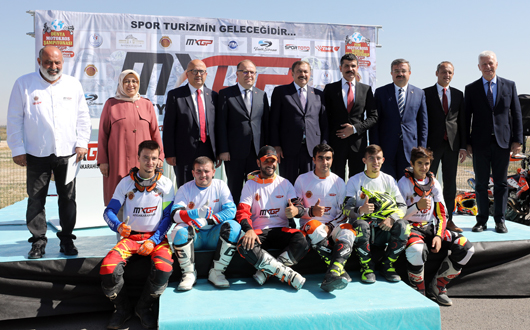 Afyonkarahisar’da Spor Toto’nun katkılarıyla 2018 yılında düzenlenecek Dünya Motosiklet Federasyonu (FIM) organizasyonu Dünya Motokros Şampiyonası’nın (MXGP) tanıtım toplantısı Afyon Motor Sporları Merkezi’nde yapıldı. MXGP tanıtım toplantısına Orman ve Su İşleri Bakanı Prof. Dr. Veysel Eroğlu, Afyonkarahisar Milletvekili Hatice Dudu Özkal, Afyonkarahisar Valisi Mustafa Tutulmaz, Afyonkarahisar Belediye Başkanı Burhanettin Çoban, Türkiye Motosiklet Federasyonu Başkanı Bekir Yunus Uçar, TMF Asbaşkanı Mahmut Nedim Akülke ve TMF Yönetim Kurulu Üyesi Sadık Vefa ile şampiyon sporcular katıldı.BAKAN EROĞLU: MXGP KENTİN TANITIMINA BÜYÜK KATKI SAĞLAYACAK