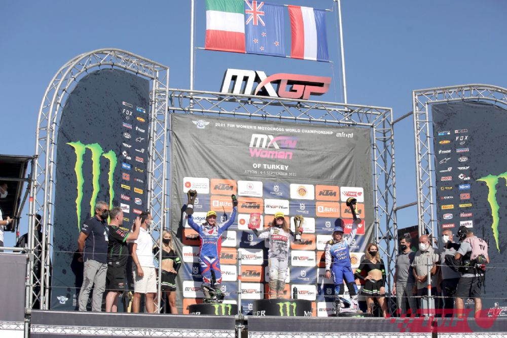 Dünnya Kadınlar Şampiyonası (MXWomen TURKEY) yarışında birinciliği Kawasaki'den Courtney Duncan 25:06:664 ile kürsüde birinciliğe ulaştı. GASGAS'dan Kiara Fontanesi ikinciliği, Yamaha'dan Nancy Van De Van ise üçüncülükle tamamladı.