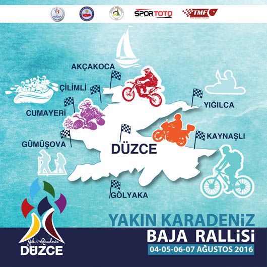 Düzce Valiliği, Düzce Belediyesi, Düzce ilçe Kaymakamlıkları ve Belediyeleri Türkiye Motosiklet Federasyonu ile ortaklaşa YAKIN KARADENİZ BAJA RALLİSİ düzenleyecek. 04-07 Ağustos tarihlerinde Düzce ili sınırları içerisinde yapılacak YAKIN KARADENİZ BAJA RALLİSİ; Akçakoca, Cumayeri, Çilimli, Gölyaka, Gümüşova, Kaynaşlı ve Yığılca ilçeleri arasında 4 gün sürecek. Motosiklet, ATV, UTV ve gezi motosikletlerinin katılacağı DÜZCE YAKIN KARADENİZ BAJA RALLİSİ’nde sporcular toplam 400 km özel etabı geçip finişe ulaşmaya çalışacaklar. DÜZCE YAKIN KARADENİZ BAJA RALLİSİ’nin ilk tanıtım toplantısı Düzce Valisi Ali Fidan başkanlığında, Valilik Makam Toplantı salonunda gerçekleştirildi. Toplantıya Düzce Vali Yardımcısı Kazım Karabulut, Düzce Belediye Başkanı Mehmet Keleş, Türkiye Motosiklet Federasyonu Başkanı Bekir Yunus Uçar, Yönetim Kurulu Üyesi Mahmut nedim Akülke, Kaynaşlı Kaymakanı Şenol Koca ve yetkililer katıldı.