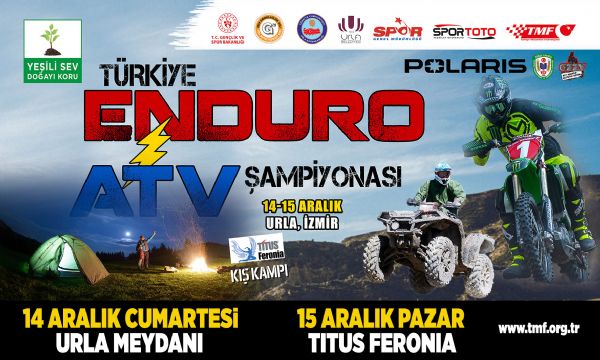 Türkiye Enduro ve ATV Şampiyonası’nda sezon İzmir’in Urla ilçesinde 14-15 Aralık tarihlerinde “Yeşili Sev, Doğayı Koru” sloganıyla yapılacak yarışlarla bitecek. Türkiye Enduro ve ATV Şampiyonası’nın kapanış yarışı, Titus Feronia Tesisleri’nin ekstrem parkurunda gerçekleştirilecek. Sporcular 14 Aralık Cumartesi günü lastik, kaya, ağaç, su ve beton büzlerden oluşan yapay parkurda yarışa ön sırada başlamak için start alacak. 15 Aralık Pazar günü Ekstrem Test ve Enduro Testten oluşan parkurda hem zamanla hem de doğayla mücadele edecek sporcular, ara etaplarla birlikte yarışları tamamlamaya çalışacaklar. Enduro tutkunları gün boyunca; E1, E2, E3, EGenç, EB, EC, EVeteran sınıflarında, ATV klasmanında ise S1, S2 ve S3 sınıflarında ödül kürsüsüne çıkmaya çalışacak.