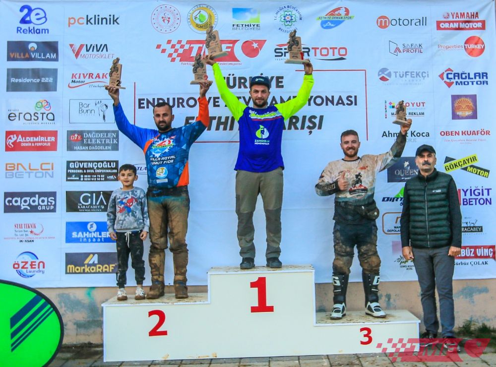 EnduroGP ve E3A sınıfında Toz Toprak Motosiklet Spor Kulübü sporcusu Bayram Uysal, E1A sınıfında Fethiye Orman Spor Kulübü sporcusu Ümit Kaya, E1B sınıfında İznik Motosiklet Kulübü sporcusu Kenan Kazan, E2A sınıfında Enduro İstanbul Spor Kulübü sporcusu Rafet Karakuş, E2B sınıfında Toz Toprak Motosiklet Spor Kulübü Furkan Zandolu, E3B sınıfında Toz Toprak Motosiklet Spor Kulübü sporcusu Erkan Yüksek, EC sınıfında Kartepe Motosiklet Spor Kulübü sporcusu Resul Kurtuluş, Gençler sınıfında İznik Motosiklet Kulübü sporcusu Mehmet Emin Musaoğlu, Kadınlar sınıfında Sarıyer Motosiklet Kulübü sporcusu İrem Ertüzün, Veteran sınıfında Enduro Motosiklet Bilecik Spor Kulübü sporcusu Ali Baydaş, ATV1 sınıfında Smyrna Motosiklet Spor Kulübü sporcusu Hasan Can Özerbaşaranlar ve ATV2 sınıfında Kartepe Motosiklet Spor Kulübü sporcusu Hakan Doğan şampiyonluklarını ilan etti. Kulüpler sıralamasında da Fethiye Orman Spor Kulübü birinci sırada yer aldı.
