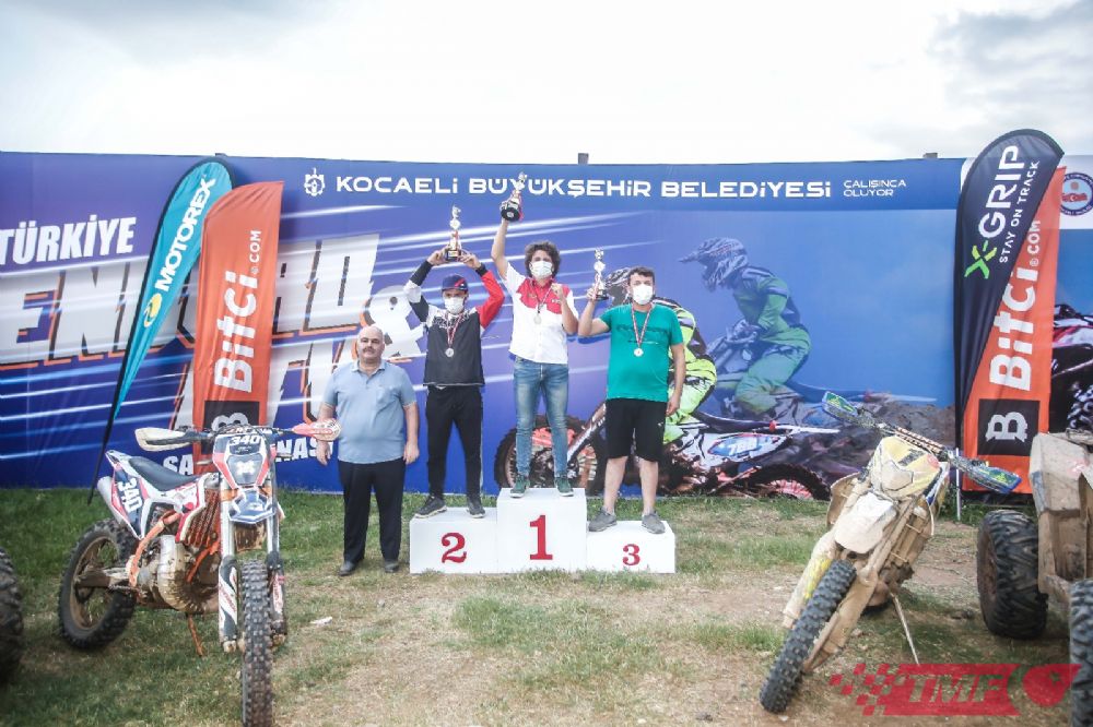 Kartepe ayağında en hızlı sporcuların yer aldığı EnduroGP’de Bayram Uysal birinci olurken, Deniz Memnun ikinci ve Anıl Özşeker’de üçüncü sırada yer aldı. ATV GP ise ödül kürsüsüne sırasıyla Ahmet Özgül, Görkem Gül ve Mustafa Taşkın çıktı. Şampiyonada dereceye giren sporculara, Kocaeli Büyükşehir Belediyesi Başkan Vekili Yaşar Çakmak, Gençlik ve Spor Hizmetleri Dairesi Başkanı Şemsettin Yıldırım, Kartepe Belediye Başkan Yardımcısı Orhan Akyüz, Gençlik ve Spor İl Müdür Yardımcısı Ziyaülhak Sarıgül kupalarını verdi.