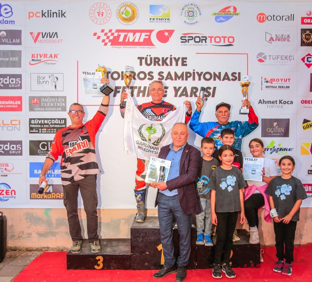 On binlerce yarış severin yakından takip ettiği şampiyonada dereceyi giren sporcular kupalarını Fethiye protokolü ve federasyon yetkililerinden aldı.