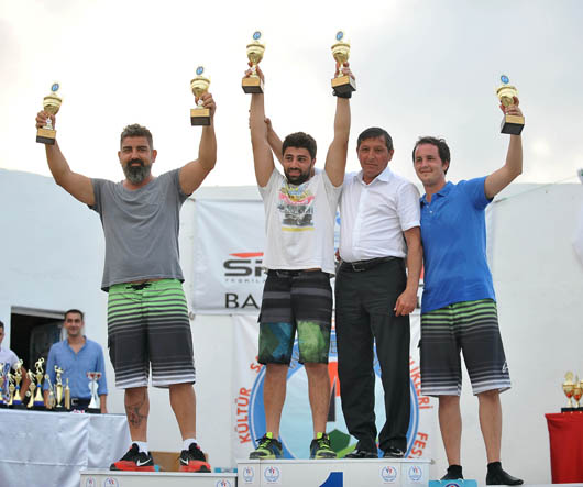GÖSTERİLER NEFESLERİ KESTİ Abana meydanında yapılan kupa törenine vatandaşlar büyük ilgi gösterdi. İki gün Karadeniz’in dalgalarıyla mücadele eden sporcular kupalarına kavuştu. Sporcular kupalarını Abana Kaymakam Vekili Recep Koşal, Belediye Başkanı Rıdvan Oyar, Belediye Başkan Yardımcısı Ramazan Akçınar, TMF Asbaşkanı Hamit Dizman, Yönetim Kurulu üyeleri Mahmut Nedim Akülke, Okan Alp’ten aldı. Etkinlik kapsamında gerçekleştirilen motosiklet gösterileri izleyenlerin beğenisini topladı. Motosiklet şovmeni Birkan Polat yaptığı birbirinden güzel hareketlerle izleyenlerden büyük alkış aldı. Flayboard gösterisinde sporculardan Veli Özkan Piro, “Şehitlerimizi Saygıyla Anıyoruz” pankartı açıp, denizden Türk bayrağıyla çıktı.