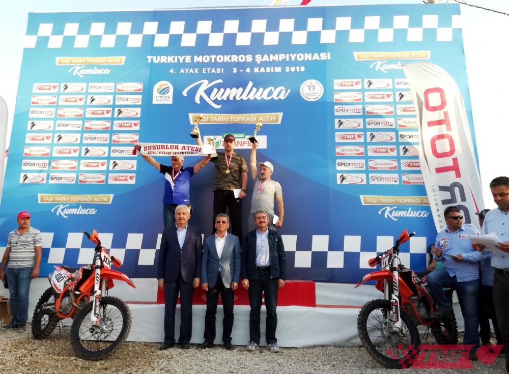 Türkiye Motokros Şampiyonası'nın 4. Ayak yarışı Antalya’nın Kumluca ilçesinde yapıldı. Dördüncü ayak yarışlarında 65 sporcu Beykonak MX pistinde kupa mücadelesi verdi. Binlerce yarış severin takip ettiği yarışları Kumluca Belediye Başkanı Yusuf Göven, eski Belediye Başkanı Hüsamettin Çetinkaya, AK Parti İlçe Başkanı Arif Yavuzer, Nihat Özkan (Özkan Fide) ve ilçe protokol üyeleri de izledi.