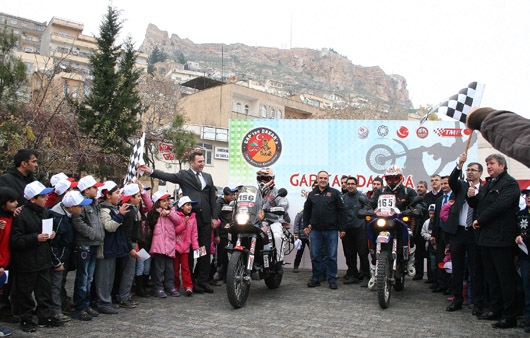 Türkiye Motosiklet Federasyonu’nun desteğiyle Dakar Rallisi’ne katılacak sporcularımız Şakir Şenkalaycı ve Serkan Özdemir’in katıldığı “GAP’tan Dakar’a”’nın ikinci tanıtım startı Mardin’de yapıldı. Cumhuriyet Meydanı Müze önünde yapılan seramoniye Mardin Vali Yardımcısı Tolga Kamil Ersöz, Mardin İl Spor Müdürü Mustafa Kuzu, TMF Asbaşkanı Ogün Baysan, Hamit Dizman, Yönetim Kurulu Üyesi Mahmut Nedim Akülke, Mardin yerel yöneticileri ile minik öğrenciler katıldı.