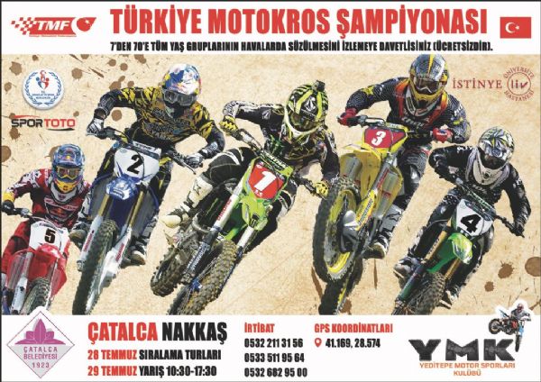 Yeditepe Motor Sporları Kulübü tarafından Çatalca Nakkaş mahallesinde yapılacak olan Türkiye Şampiyonası; MX1, MX2/MX2 Junior, MX, 85cc, 65cc, 50cc ve Veteran sınıflarında koşulacak.
