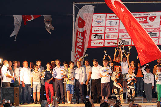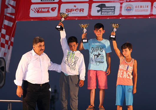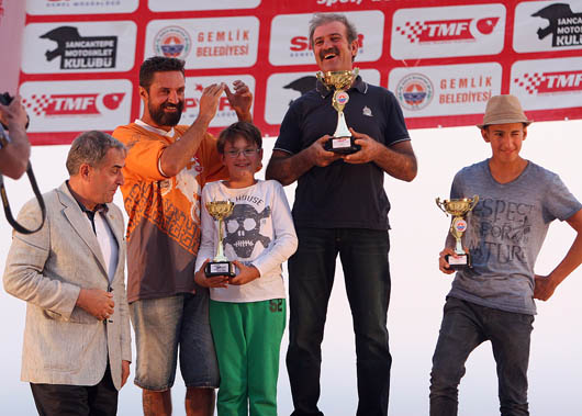 Rüzgar ve toza rağmen sporcuların özverili mücadeleleri izleyenlerden büyük alkış aldı. Dereceye giren sporcular kupalarını AK Parti Bursa Milletvekili İsmet Su, Gemlik Kaymakamı Mustafa Altıntaş, Gemlik Belediye Başkanı Refik Yılmaz, TMF Asbaşkanı Ogün Baysan, TMF Yönetim Kurulu Üyeleri Ali Ulusan ve Mahmut Nedim Akülke’den aldı.