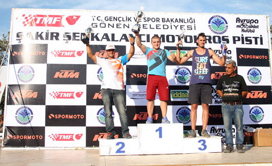 Türkiye Motokros Şampiyonası 4. Ayak yarışı Gönen’de Avrupa Motosiklet Kulübü’nün organizasyonuyla düzenlendi. Toplam 12 sınıfta Gönen Belediyesi Şakir Şenkalaycı Parkuru’nda start alan sporcuların mücadeleleri, yarışseverlere büyük heyecan yaşattı. Uzunluğu bin 950 metre olan ve sabah saatlerinde etkili olan yağmur sonrası iki etap halinde yapılan yarışlarda MX1 sınıfında Shevki Şevkiev (BAMOS), Şakir Şenkalaycı (AVMK) ve Sinan Memnun (MMK) ilk üç sırayı aldı. 19 rampadan oluşan parkurda en dikkat çekici yarışlar MX2 ve MX2 Junior sınıfında yapıldı. Her iki sınıftada Asrın Rodi Pak (UŞAK) ilk sırayı elde ederken, Galip Alp Baysan (STMOK) ikinci ve Mustafa Çetin’de (YMK) üçüncü oldu.