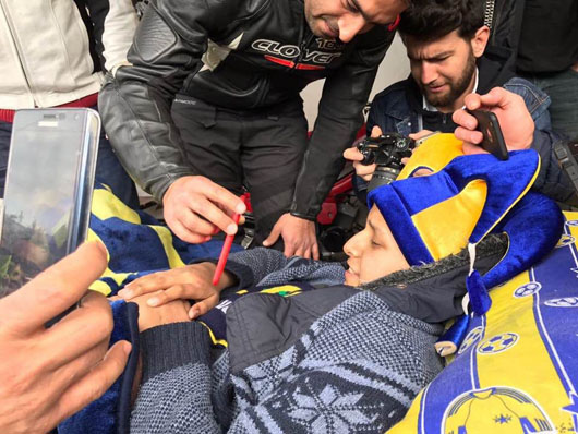 Mersin Motosiklet Spor Kulübü öncülüğünde Türk Chopper, Türk Riders, Ragnarok Mersin, Yamaha Motor grupları ve kendilerine ‘Tebessüm Gönüllüleri’ adını veren bir grup motosiklet aşığı, omurilik kanseri Nazım Bozdoğan’ı evinde ziyaret etti. Gerçekleştirilen ziyaret esnasında Türkiye Motosiklet Federasyonu Başkanı Bekir Yunus Uçar ve milli sporcu Kenan Sofuoğlu, en büyük tutkusunun motosiklet olduğu öğrenilen Nazım Bozdoğan’ı telefonla arayarak geçmiş olsun dileklerini iletti. Sofuoğlu, “Nazım ben de elimi kırdım; çok ağrım var hastanedeyim. O yüzden yanında olamadım. Ben yolum o tarafa düşünce seni gelip canlı canlı ziyaret edeceğim. Bir de kullandığım bir şeylerden hediye getireceğim” diye konuştu. Kenan Sofuoğlu ile konuşmaktan büyük mutluluk duyan Nazım da "Dört gözle bekleyeceğim. Teşekkür ederim abi. Sana da geçmiş olsun abi" şeklinde konuştu.