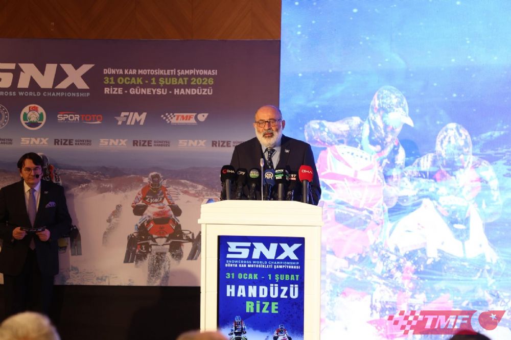 Toplantıda konuşan Türkiye Motosiklet Federasyonu Asbaşkanı Mahmut Nedim Akülke, Dünya Kar Motosikleti Şampiyonası’nı Rize Handüzü’nde gerçekleştirmenin federasyon adına büyük bir mutluluk ve gurur kaynağı olduğunu vurguladı. Akülke, 2023 yılında “Spor Turizminde Marka Şehir Rize” temasıyla düzenlenen Spor Turizmi Çalıştayı ile bu önemli organizasyonun ülkemizde yapılmasına öncülük eden Gençlik ve Spor Bakanı Sayın Dr. Osman Aşkın Bak’a teşekkür etti. SNX Türkiye’nin, Sayın Valimizin vizyonu ve destekleriyle spor turizmine önemli katkılar sağlayacağını ifade eden Akülke, Handüzü’nde bu prestijli şampiyonaya ilk kez ev sahipliği yapmaktan büyük memnuniyet duyduklarını belirtti. 2026 yılının ilk dünya şampiyonasını organize etmenin haklı gururunu yaşadıklarını dile getiren Akülke, organizasyonun Türkiye’nin spor turizmi değerine kalıcı katkılar sunacağına inandıklarını söyledi.