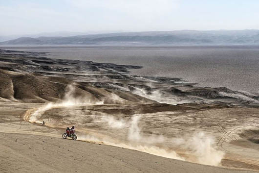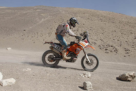 Dakar’da zorlu Bolivya etabının ardından TMF Dakar takımının sporcuları Şili’de Iquique-Calama etabını kum fırtınası altında geçti. Atacama çölünün geride kaldığı etaba 93 yarışçı start aldı. Yarışçılarımız, kum tepeleriyle boğuştuktan sonra, 3 bin 500 rakıma taşlı ve dar vadilerden çıktılar. 450 km.’si özel etap, toplam 538 km.’den oluşan parkuru 09:37:35’lik zamanıyla Şakir Şenkalaycı 67. sırada, Bolivya etabını aynı gün tamamlayıp, hiç dinlenmeden Calama bölümüne başlayan Serkan Özdemir’de 10:23:04 ile 79. sırada tamamladı.Şili’nin kuzeyinde dünya'nın en kurak çölü Atacama’da son kez yarışılan etabı Portekizli pilot Helder Rodrigues kazandı. And dağlarının eteklerindeki dünyanın en kurak yeri Calama etabında Koray Özkaplan’da 81. oldu.