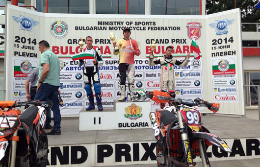 Bulgaristan’ın Pleven şehrinde yapılan Avrupa ve Doğu Avrupa Süpermoto Şampiyonası’na katılan sporcularımız başarılı sonuçlara imza attı. Dolna Mitropolia pistinde düzenlenen Avrupa ve Doğu Avrupa Süpermoto Şampiyonası’nın SM3 sınıfında genç sporcumuz Asrın Rodi Pak birinci oldu. Pleven şehrindeki yarışta rakiplerine büyük fark atan Pak, genel klasmanda Bulgar Borislav Stoimenov’un 22 puan önünde 150 puanla liderliğini sürdürdü.SM85 sınıfında piste çıkan Öncü kardeşlerden Can Öncü birinci olurken, kardeşi Deniz Öncü’de üçüncülüğü elde etti. 11 yaşındaki ikiz kardeşlerden Can Öncü genel klasmanda 2., Deniz Öncü’de 4. sırada kaldı. Dolna Mitropolia pistinde koşulan Balkan Şampiyonası’nda Türkiye takım halinde ikinci olurken, SM65 sınıfında Ata Kahvecioğlu üçüncülük kupasını kazandı.