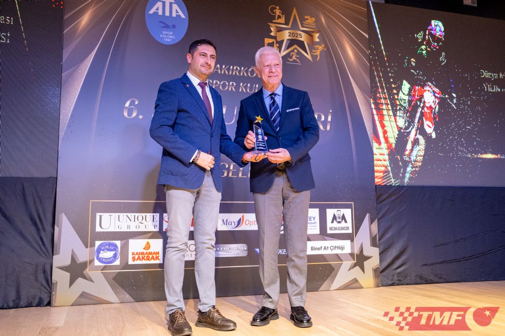 “Yılın En İyi Spor Projesi” ödülü, Türkiye Motosiklet Federasyonu Başkanı Sadık Vefa’ya takdim edildi. Başkan Vefa, törende yaptığı konuşmada federasyonun sporun gelişimine yönelik vizyonunu şu sözlerle ifade etti: “MXGP Türkiye Dünya Motokros Şampiyonası’nın bu yıl 8’nsini başarıyla gerçekleştirdik. Spor turizmine olan katkısıyla her yıl aynı yerde olmamakla birlikte, doğu illerindeki genç yetenekleri keşfederek daha fazla başarılı sporcuyu Türk sporuna kazandırmayı hedefliyoruz. Bayrağımızı uluslararası arenada gururla dalgalandıran sporcularımız için önemli bir yol haritası belirledik. Genç yeteneklerin daha fazla olmasını arzu ediyoruz. İnşallah dünya arenasında daha büyük başarılar elde eden sporcularımızı görmek en büyük dileğimiz.”