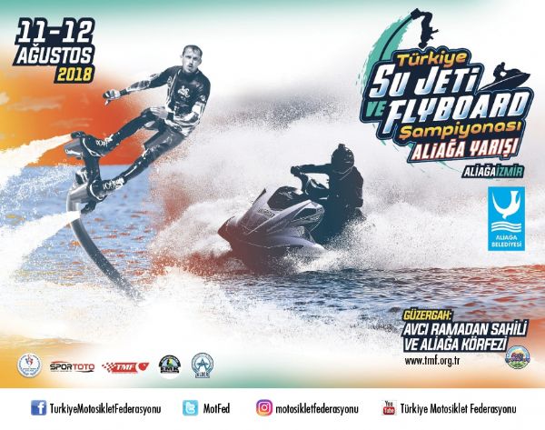 Türkiye Motosiklet Federasyonu ve Aliağa Belediyesi’nin destek verdiği Türkiye Sujeti ve Flybord Şampiyonası İzmir ilinin Aliağa ilçesinde gerçekleştirilecek. Aliağa Avcı Ramadan sahilinde 11-12 Ağustos tarihlerinde yapılacak şampiyonada sporcular Ege’nin dalgalarıyla mücadele edecek. Şampiyonanın ilk ayağı 11 Ağustos Cumartesi günü serbest antrenmanlarla başlayacak. Aliağa körfezinde 12 Ağustos Pazar günü sporcular denizde oluşturulan özel parkurda hem dalgalarla hem de rakipleriyle kupa için yarışacak.