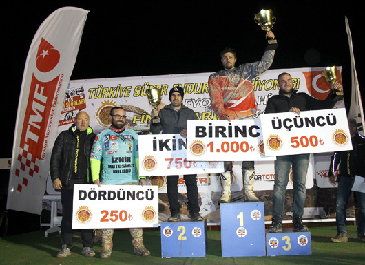 Çamur olan parkurda, taş, lastik, derin çukurlar, kütükler, odun parçaları gibi zorlu engellere karşı, güç ve dayanaklılık sınavı veren sporcular, inanılmaz bir mücadele ortaya koydu. Özellikle derin çukur engellini aşmakta bir hayli zorlanan yarışçıların buradaki mücadelesi izleyenlere de büyük keyif ve heyecan yaşattı. Türkiye Süper Enduro Şampiyonası NTVSpor'dan canlı olarak yayınlandı. Yarış sonunda dereceye giren sporculara, kupa ve ödülleri verildi.