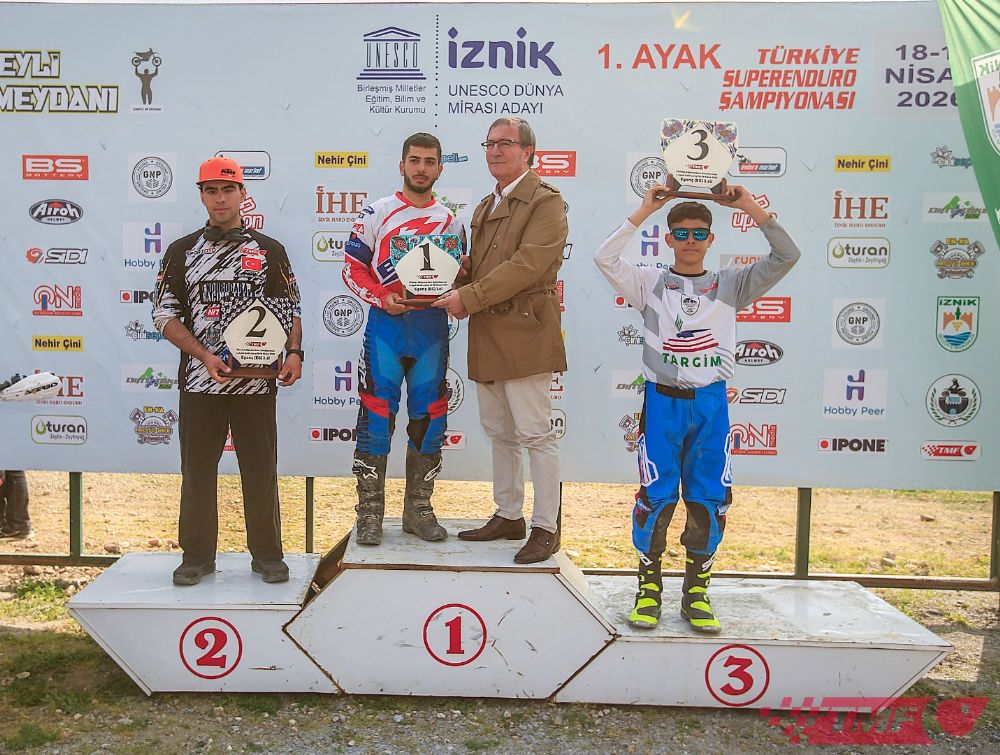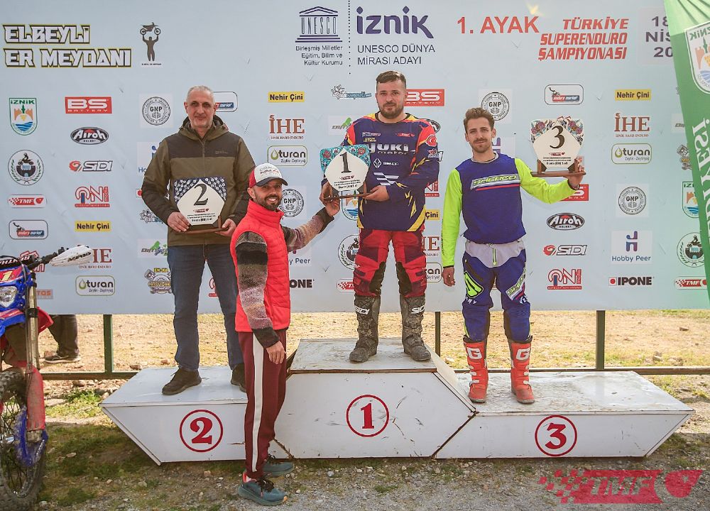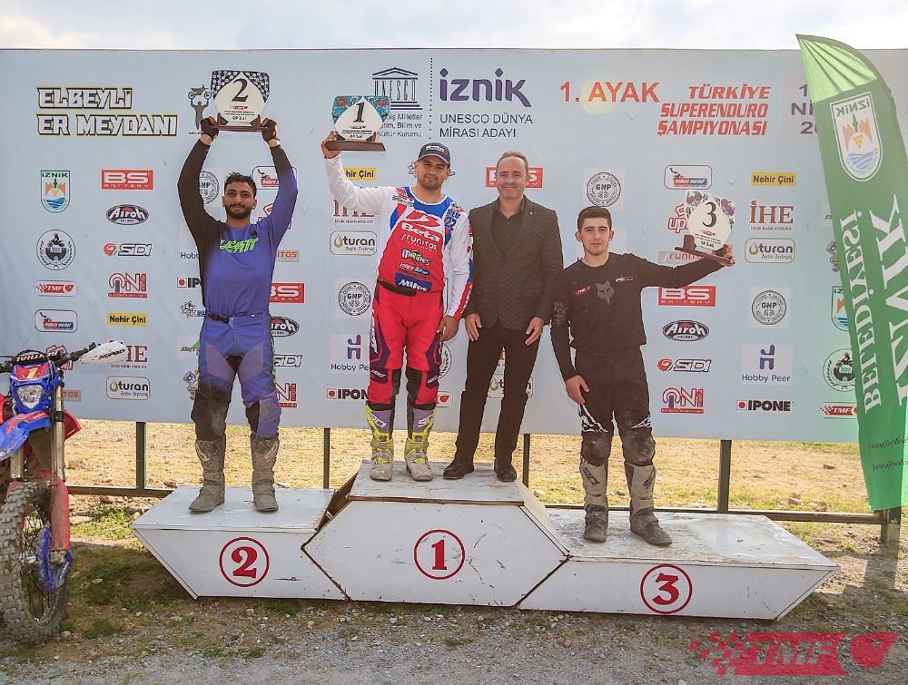 Hafta sonunun en hızlı 20 sporcunun yer aldığı Süper EnduroGP’de Mehmet Emin Musaoğlu (IZMOK) birinci, Kenan Kazan (IZMOK) ikinci ve Mehmet Taha Tomak’da (IZMOK) üçüncülüğü elde etti.