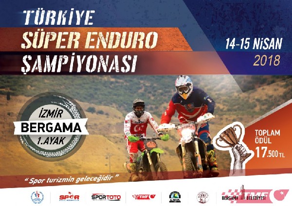 Türkiye Süper Enduro Şampiyonası’nda sezonun açılış yarışı, 14-15 Nisan tarihlerinde İzmir’in Bergama ilçesinde yapılacak. Dereceye giren sporculara 17 Bin 500 TL para ödülü dağıtılacak.