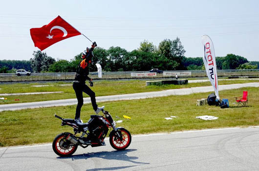 Öteyandan Akyazı'da düzenlenen Türkiye Süpermoto Şampiyonası'nda final yarışları yapılırken Birkan Polat şov gösterisiyle izleyenlere heyecanlı anlar yaşattı.