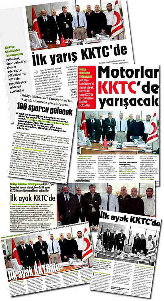 Öte yandan TMF’nin Türkiye Süpermoto Şampiyonası’nın startını KKTC’de vereceği haberi ada basının büyük ilgisini çekti. TMF yetkililerinin KKTC’de yaptıkları ziyaret haberleri gazetelerin manşetlerini süsledi. TMF heyeti, KKTC’li yarışçılarla da bir araya geldi.