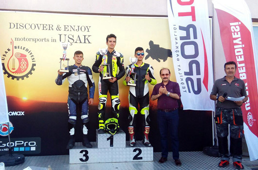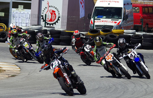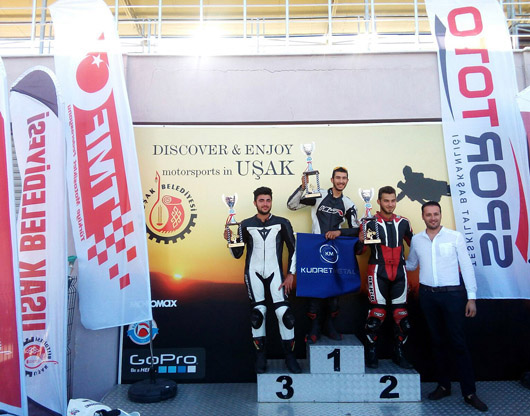 Süpermoto B sınıfında Mehmet Sabri Yılmaz (SMYRNA-TM) vdamalı bayrağı ilk sırada görürken, Caner Doğru (KNN54-Yamaha) ve Yasin Keklik’te (AVMK-KTM) ilk üçe giren diğer isimler oldu.