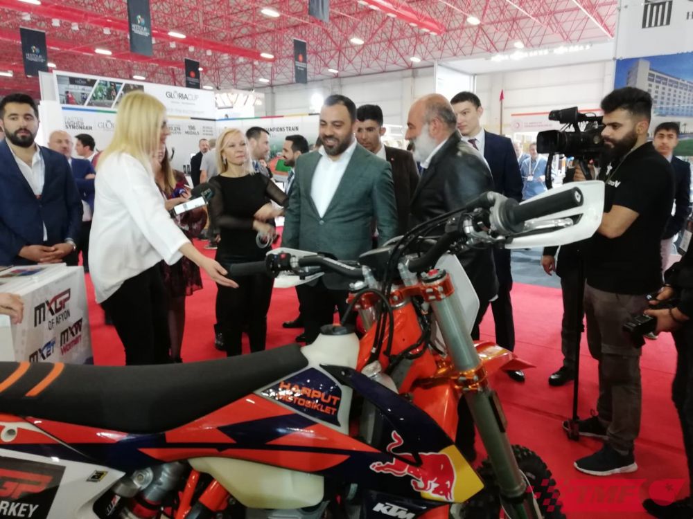 Antalya ANFAŞ EXPO Center’daki fuarda Türkiye Motosiklet Federasyonu ve Dünya Motokros Şampiyonası MXGP standı büyük ilgi gördü. Gençlik ve Spor Bakanı Dr. Mehmet Muharrem Kasapoğlu, Bakan Yardımcısı Hamza Yerlikaya, Antalya Valisi Münir Karaloğlu, Afyonkarahisar Valisi Mustafa Tutulmaz, Spor Genel Müdürü Mehmet Baykan, Gençlik ve Spor İl Müdürleri, Federasyon başkanları, üst düzey idareciler, basın mensupları ve yabancı misafirler ile motosiklet meraklıları standımızı ziyaret etti. Stantta ziyaretçilere Türkiye Motosiklet Federasyonu Başkanı Bekir Yunus Uçar ve Asbaşkan Mahmut Nedim Akülke, Dünya Motokros Şampiyonası ve federasyon çalışmaları hakkında bilgi verdi.