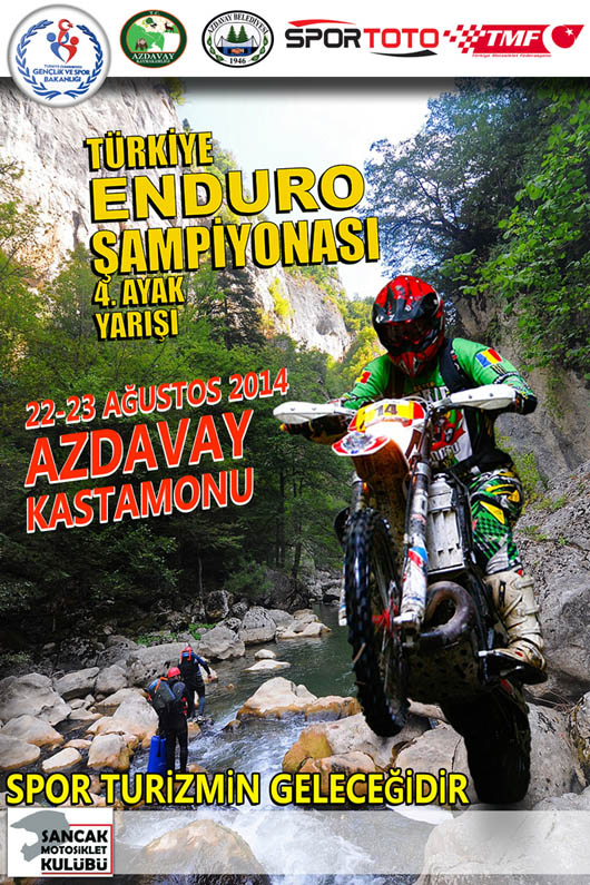 Türkiye Motosiklet Federasyonu’nun düzenlediği; Sancaktepe Motosiklet Kulübü’nün organize ettiği, Türkiye Enduro Şampiyonası 4. Yarışı 22 ve 23 Ağustos 2014 tarihlerinde Kastamonu’nun Azdavay ilçesinde; Azdavay Kaymakamlığı’nın, Azdavay Belediyesi’nin destekleri ile Suğla Yaylası'nda gerçekleştirilecek. Seyir keyfi yüksek ve çok çekişmeli olacak yarışa ulusal ve yerel düzeyde olmak üzere 100’ün üzerinde sporcunun katılması bekleniyor.Azdavay Belediyesi tarafından E1A, E1B, E2A, E2B, E3A, E3B, EC ve Bayanlar Kupası'nın Birincisine 650 TL., İkincisine 450 TL., Üçüncüsüne 250 TL. ve Dördüncüsüne 150 TL. para ödülü dağıtılacak.