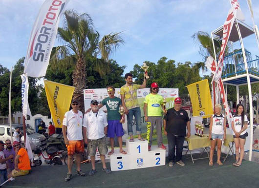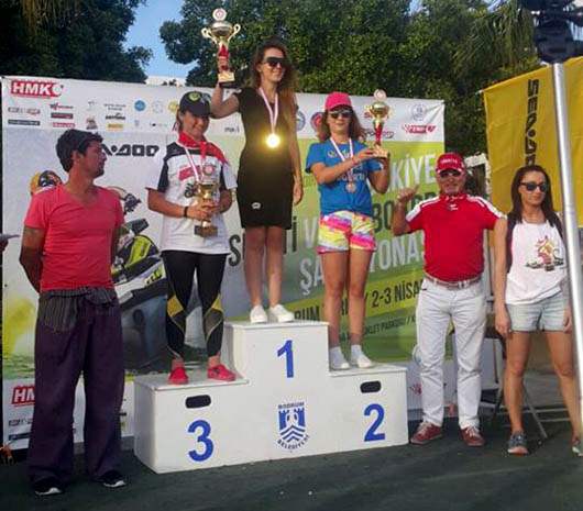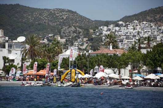 Türkiye Motosiklet Federasyonu (TMF) tarafından Halikarnas Motor Sporları Kulübü'nün (HMSK) ev sahipliğinde düzenlenen şampiyonada sporcular Ege'nin mavi sularında kıyasıya mücadele etti. Sporcular, toplu çıkışlarda kumsaldan koşarak sujetlerine bindi. Şampiyonanın birinci ayağında 5'i kadın 29 sporcu yarıştı. 30 Nisan-1 Mayıs tarihlerini kapsayan Bodrum yarışı Kumbahçe sahilinde hazırlanan parkurda yapıldı. Kumbahçe sahilindeki yarışları çok sayıda vatandaş ilgiyle izledi. Özellikle flyboard mücadelesi renkli görüntülere sahne oldu. Bu sınıfta 3 dakika içerisinde yeteneklerini sergileyen sporcular, bu sürenin bitiminin ardından izleyenler için ayrıca 2 dakikalık gösteri yaptı. Su jetinde olduğu gibi flyboard mücadelesinde de Türk Bayrağı açan sporcular bol bol alkış aldı.Yarışlarda 111-179 BG ve Flyboard kategorisinde Ali Komşusu, 180 ve üzeri, Drag ve TMF kategorilerinde Özkan Piro, 110 BG kategorisinde Emin Durmaz, kadınlar kategorisinde ise Nilgün Bayırlı birinci oldu. Dereceye giren sporculara ödülleri verilirken, TMF Yönetim Kurulu Üyesi Faysal Şefkatlioğlu, jet-ski sporuna olan ilginin her geçen gün arttığını söyledi.