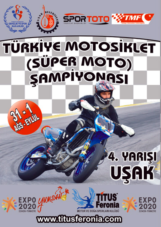 Türkiye Motosiklet Federasyonu (TMF) yarış takviminde yer alan Türkiye Süpermoto Şampiyonası’nın 4. Ayak yarışı, Uşak’ta yeni yapılan süpermoto pistinde 31 Ağustos-1 Eylül tarihlerinde yapılacak. Şampiyonanın 4. Ayak yarışı Uşak Belediyesi işbirliğiyle TİTUS-Feronia Motosiklet ve Doğa Sporları Kulübü (TİMOTOK) tarafından organize edilecek. İzmir yolu üzerinde bulunan Bin 115 metre uzunluğunda ve modern tribünlere sahip olan pist, Türkiye Şampiyonası ile kapılarını hem sporculara hem de yarışseverlere açacak. 1 Ağustos 2013 ve 01 Eylül 2013 tarihlerinde Uşak’ta ilk kez yapılacak yarışlar motor sporları severlere unutulmaz bir heyecan yaşatacak.