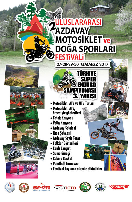 Türkiye Motosiklet Federasyonu, Kastamonu Valiliği ve Azdavay Belediyesi’nin desteklediği Uluslararası Azdavay Motosiklet ve Doğa Sporları Festivali 27-30 Temmuz 2017 tarihleri arasında 2. kez yapılacak. Suğla Yaylası’ndaki Azdavay Doğa ve Motor Sporları Merkezi’nde gerçekleştirilecek festival kapsamında birçok etkinlik yapılacak.BİRKAN POLAT’TAN MOTOSİKLET ŞOV