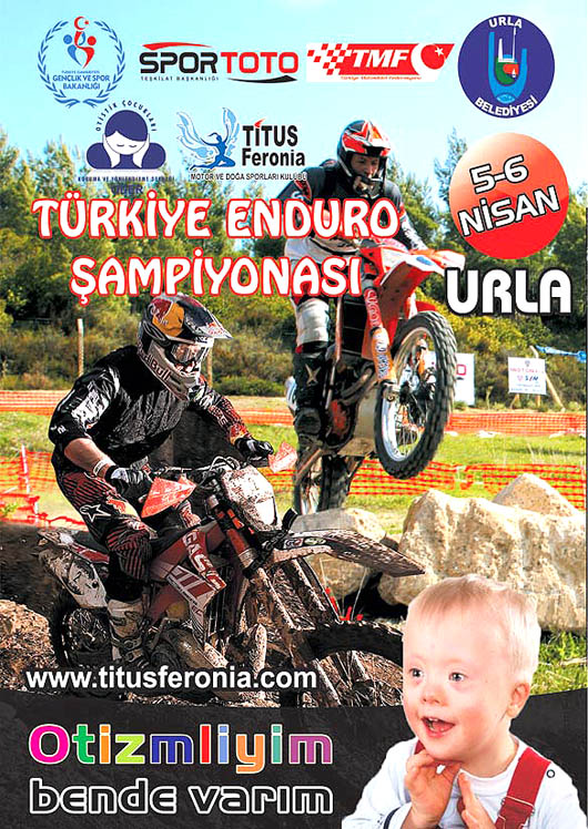 Türkiye Motosiklet Federasyonu’nun 2014 yarış takviminde yer alan Türkiye Enduro Şampiyonası’na İzmir'in Urla ilçesindeki Titus-Feronia Doğa ve Motor Sporları ev sahipliği yapacak. Enduro Şampiyonası 2. Ayak yarışı 5 Nisan 2014 Cumartesi günü saat 12.00’de Urla Belediyesi Konferans Salonu’ndaki brifing ve ardından Urla Belediyesi önünde tanıtım startı ile başlayacak. Şampiyona daha sonra Urla Yağcılar Köyü Narlıbahçe mevkiindeki Titus Feronia Yarış Parkuru’nda süper test etabıyla devam edecek. Türkiye Enduro Şampiyonası 2. Ayak Urla Yarışı, 6 Nisan Pazar günü start alacak. İki turluk seyirci etabından sonra; insan - doğa mücadelesinin en görkemli örneklerinin sergileneceği zorlu bir parkurda yarış devam edecek. Zorlu Ekstrem Etabı, motosiklet severlere unutulmaz anlar yaşatacak ve yarışçılar üstün performanslarıyla ikinci ayak yarışına renk katacak.