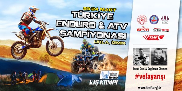 Ülkemizde yarış sezonu 23-24 Mart tarihlerinde İzmir’in Urla ilçesinde yapılacak Türkiye Enduro ve ATV Şampiyonası ile açılacak. Bu sene yapılacak bütün organizasyonlar #Vefayarışı kapsamında hayatını kaybeden sporcularımız anısına düzenlenecek. Türkiye Enduro ve ATV Şampiyonası’nın açılış yarışları ülkemizde bir çok başarıya imza atmış sporcularımız Burak Özel ve Özgürcan Gözmen anısına yapılacak.