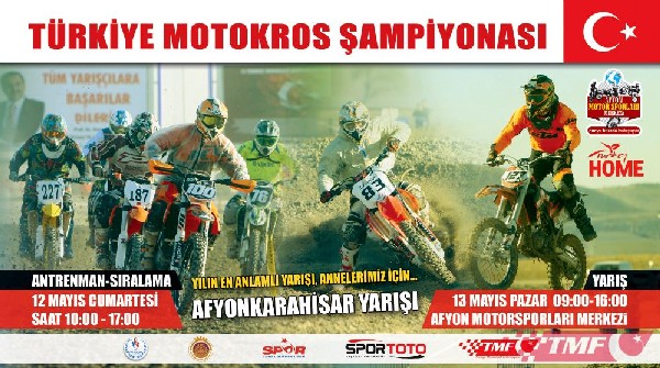 Afyonkarahisar, Türkiye Motosiklet Federasyonu’nun 2018 yarış takviminde yer alan Türkiye Motokros Şampiyonası'nın 2. Ayak Yarışı’na 12-13 Mayıs tarihlerinde evsahipliği yapacak. Afyon Motor Sporları Merkezi MX Parkuru'nda düzenelenecek yarışa Türkiye genelinden 100’e yakın sporcu katılacak. 13 Mayıs Anneler Günü’nde yapılacak organizasyon, “Yılın En Anlamlı Yarışı! Annelerimiz için.” sloganıyla düzenlenecek.