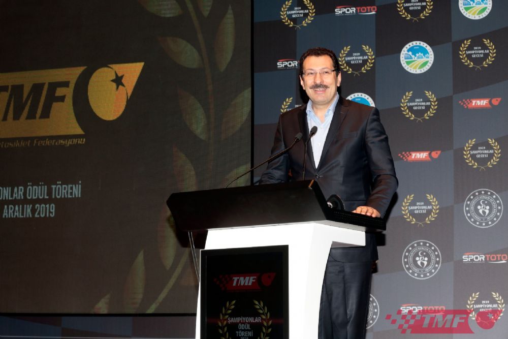 ‘Şampiyonlar Ödül Töreni"nin açılış konuşmasınında TMF Başkanı Bekir Yunus Uçar, “Sakarya'nın TMF'nin varlığında ve kariyer haritasında çok önemli bir yeri var. Biz Sakarya’ya çok şey borçluyuz ve ama aynı zamanda da alacaklıyız. Çünkü tüm dünyaya 54 rakamının Sakarya’ya ait olduğunu şampiyon sporcularımızla anlatan, tanıtan bir federasyonuz. Başta Türk gençliğini ve sporumuzu TBMM’de temsil eden Kenan Sofuoğlu’nun önderliğinde bir çok rekor ve başarıya imza attık. 2019 yılını barışla, sağlıkla ve huzurla geçirdik. Aynı zamanda sporcularımız uluslararası şampiyonalar da büyük başarılara imza attı. Yurtiçinde de hem yeni yarışçıları motosiklet sporuna kattık hem de önemli organizasyonlar yaptık. Afyonkarahisar’da Cumhurbaşkanlığı himayelerinde Dünya Motokros Şampiyonası’nı ikinci kez ödüllendirilerek tamamladık. Yeni sezonda da Türkiye'ye uluslararası alanda önemli başarılar getireceğiz. Milli sporcularımızla birlilkte dört farklı Dünya Şampiyonası’nda zirveyi kovalayacağız. Ülke tanıtımına katkı sağlayacak iki önemli organizasyona da ev sahipliği yapacağız” dedi.