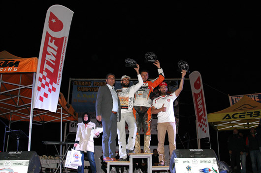 Enduro sezonun son yarışında dereceye giren sporcular İskele Meydanı'nda düzenlenen törenle kupalarını aldılar. Altı ayak sonunda E1 A sınıfında Mustafa Özkeskin (Bodrum Motosiklet Kulübü), E1 B sınıfında Görkem Yapcacık (Avrupa Motosiklet Kulübü), E2 A sınıfında Kunter Kuşçu (Fethiye Orman Spor Kulübü), E2 B sınıfında Erdal Yavuz (Sancaktepe Motosiklet Kulübü), E3 A sınıfında Serkan Özdemir (Fethiye Orman Spor Kulübü), E3 B sınıfında Harun Erdoğan (Bodrum Motosiklet Kulübü) ve Hobi sınıfında da İsmail Cem Tunç (Fethiye Orman Spor Kulübü) şampiyonluklarını ilan ettiler.
