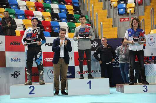 Türkiye Motosiklet Federasyonu ile İstanbul Büyükşehir Belediyesi Gençlik ve Spor Müdürlüğü işbirliğiyle yapılan İstanbul Super Cross Şampiyonası’na (SX) Ataköy TAF Atletizm Salonu ev sahipliği yaptı.Özel olarak oluşturulan pistte mücadele eden sporcular yaklaşık 5 bin seyirci önünde ilk kez düzenlenen yarışta büyük heyecan yaşadı. En hızlı 15 sporcunun iki etap halinde yarıştığı İstanbul Büyükşehir Belediye Kupası’nda Bulgar sporcu Michael İvanov (BFM-KTM) birinci oldu. İvanov’un arkasından Mustafa Çetin (BEMK-Yamaha) ikinci ve Deniz Memnun’da (STMOK-Kawasaki) üçüncü sırayı elde etti. MX2 sınıfında da ödül kürsüsünün ilk üç basamağına Michael İvanov (BFM-KTM), Mustafa Çetin (BEMK-Yamaha) ve Deniz Memnun (STMOK-Kawasaki) çıktı. Pistin en hızlı turuna 23.340’lık zamanıyla Michael İvanov imza attı.