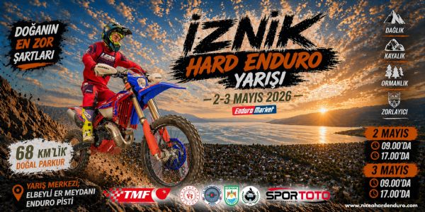 İznik, Hard Enduro Yarışlarına ilk kez 2-3 Mayıs 2026 tarihlerinde ev sahipliği yapacak. Endurocular, doğada zorlu engelleri aşmaya çalışıp altın madalyaya çıkmaya çalışacak.