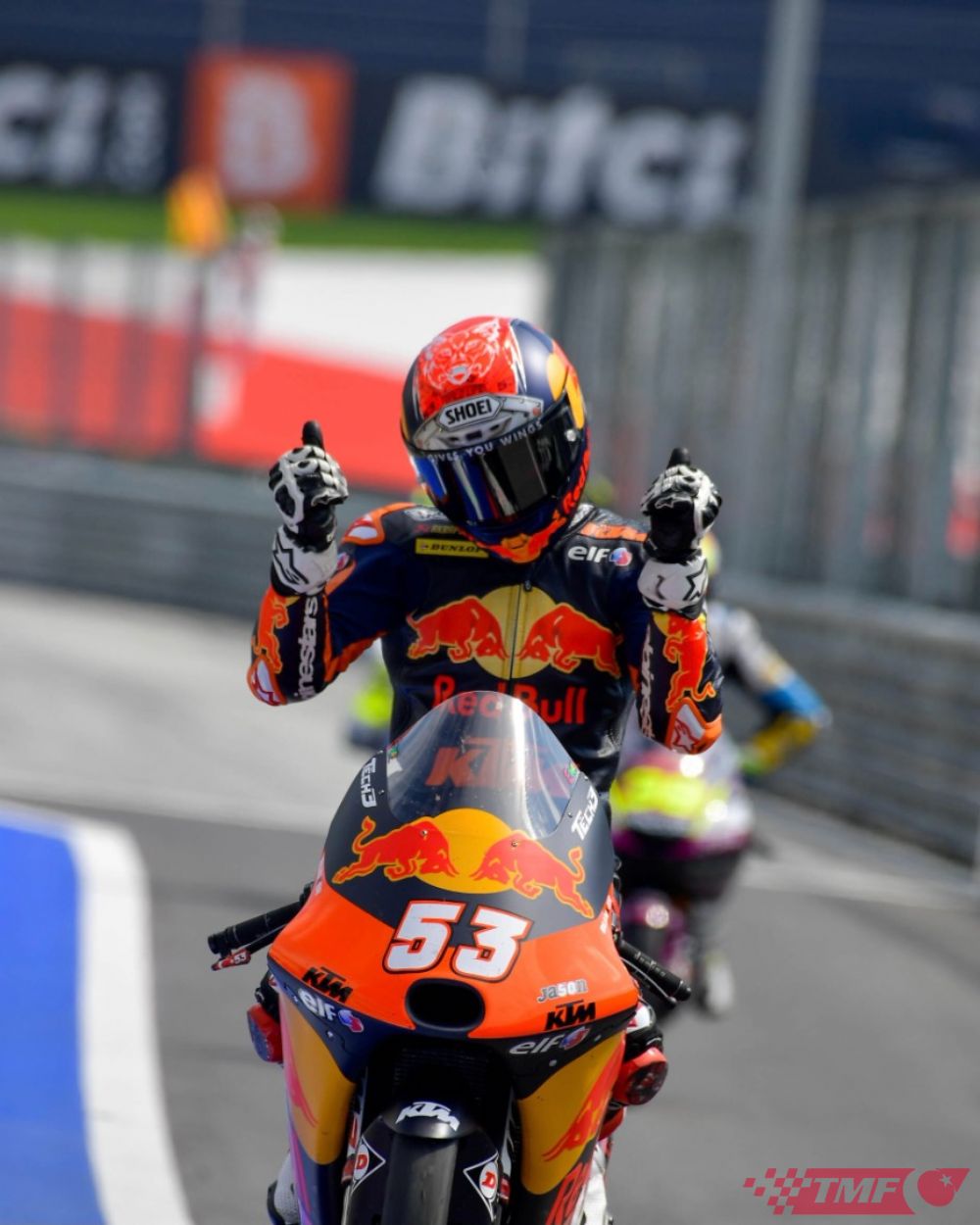 Milli sporcumuz Deniz Öncü (Red Bull KTM Tech3) FIM Moto3 Dünya Şampiyonası’nda ikinci kez ödül kürsüsüne çıktı. Sezonun 11. ayağı Bitci Motorrad Grand Prix'sisi Avusturya’nın Spielberg şehrindeki 4.300 metre uzunluğa sahip Red Bull Ring pistinde düzenlendi. TMF Milli Takımlar Kaptanı Kenan Sofuoğlu koordinesinde Moto3 sınıfında ülkemizi temsil eden milli sporcu beşinci cepten başladığı 23 turluk yarışta damalı bayraktan ikinci sırada geçti. Yarış boyunca TMF Milli Takımlar Kaptanı Kenan Sofuoğlu ve milli sporcu Toprak Razgatlıoğlu’da genç sporcumuza destek oldu.
