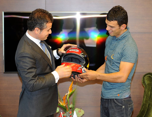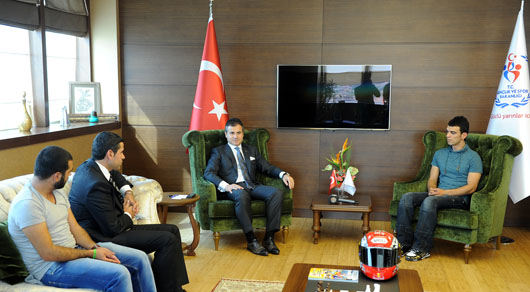 Dünya şampiyonu milli motosikletçi Kenan Sofuoğlu, Dünya Supersport Şampiyonası'nda İstanbul'da yapılan sezonun 11. ayak mücadelesini kazanmasının ardından Gençlik ve Spor Bakanı Suat Kılıç’ı makamında ziyaret etti. Sofuoğlu, İstanbul’da kazandığı yarışta taktığı kaskı Bakan Kılıç’a hediye etti. Bakan Kılıç, şampiyon motosikletçiyi tebrik ederken verdikleri desteği sürdüreceklerini belirterek, “İnşallah daha nice daha da büyük başarılara imza atarsınız” dedi.