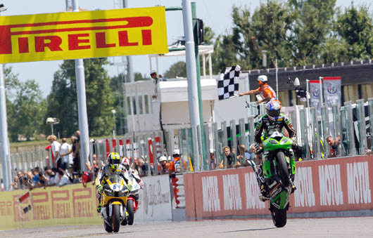 Dünya Supersport sınıfının 1 numarası Kenan Sofuoğlu (Kawasaki Puccetti), İtalya’nın Misano Pisti’nde (4.226) 112. yarışına çıktı. FIM Dünya Supersport Şampiyonası’nın 8. Ayak yarışına ikinci cepten start alan milli sporcumuz, 19 turluk (80.294 km) yarışı uzun bir süre üçüncü sırada sürdürdü. Misano’da kontrollü giden Saofuoğlu, son beş tur kala önündeki rakipleri tek tek geçip, damalı bayrağı ilk sırada görmeyi başardı. Sofuoğlu’nu Federico Caricasulo ve Patrick Jacobsen takip ederken, milli sporcumuz puanını 146’ya yükselterek farkı da 38 puana kadar çıkarttı.