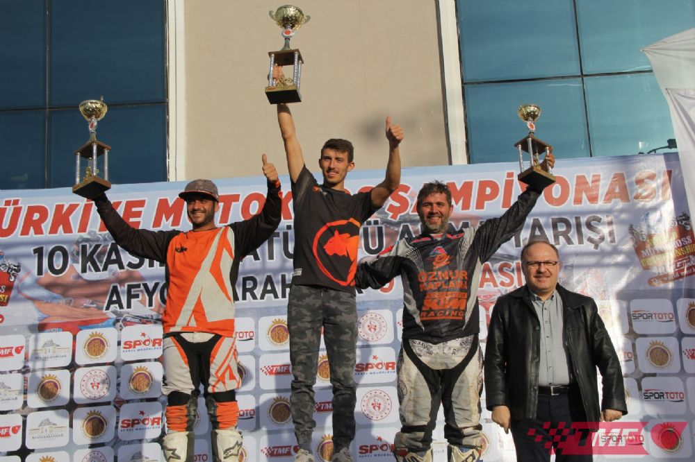 Afyonkarahisar Belediyesi’nin destekleriyle Afyon Motor Sporları Merkezi'nde gerçekleştirilen yarışlara, Türkiye genelinden 55 sporcu katıldı. Şampiyonanın son ayak yarışlarını Afyonkarahisar Valisi Mustafa Tutulmaz, Garnizon Komutanı Tuğgeneral Osman Alp, Afyonkarahisar Belediye Başkanı Mehmet Zeybek, Spor Genel Müdür Yardımcısı Murat Kocakaya, Gençlik ve Spor İl Müdürü Feyzullah Dereci, İl Genel Meclis Başkanı Burhanettin Çoban ve TMF Asbaşkanı Ogün Baysan takip ederken, dereceye giren sporculara kupaları protokol üyeleri tarafından takdim edildi.