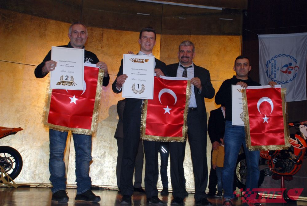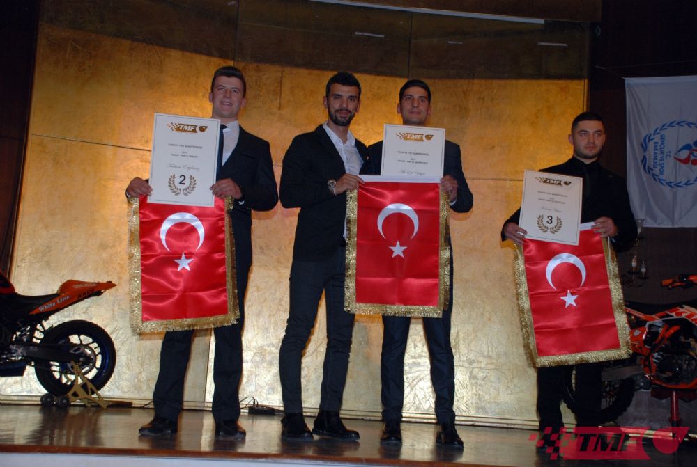 Gecede pist, enduro, süperenduro, motokros, süpermoto, drag, sujeti ve ATV branşlarında dereceye giren 220 sporcu ve kulübe, kupa ve madalya yerine sertifika ile Türk bayrağı takdim edildi. Afrin harekâtında Mehmetçik’e destek amacıyla bütün sporcu ve kulüp temsilcilerine Türk bayrağı verdiklerini belirten TMF Başkanı Bekir Yunus Uçar, ülke olarak geçtiğimiz süreçte destek olmak için ellerinden geleni yapmaya hazır olduklarını belirterek, “Ödül töreninde diğerlerinden farklı olarak madalya veya kupa vermedik. Kupa ve ödül plaketine harcanacak parayı Mehmetçik Vakfı’na bağışlamayı düşünüyoruz” dedi. Başkan Uçar, 2017'de elde edemediğimiz başarılara 2018'de ulaşacağız. Bu sene büyük emekler sonucunda Dünya Motokros Şampiyonası'nı 2018 ve 2019 yılında tekrar ülkemize yapacağız. Bu, Türkiye için çok büyük bir başarı. Yeni sezonda çocuk ve genç sporculara yatırım yapacağız. Bununla ilgili en kısa sürede yapılan çalışmaları açıklayacağız.” diye konuştu.