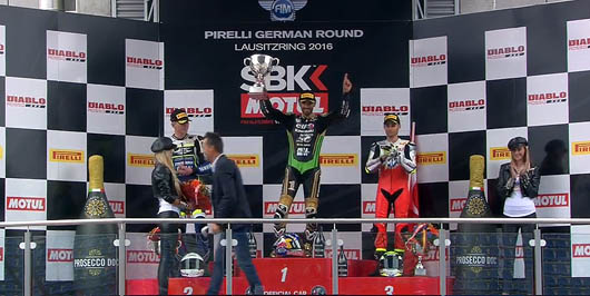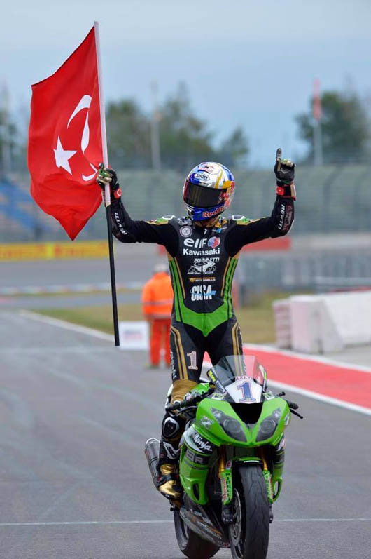 Milli sporcumuz Kenan Sofuoğlu, Dünya Supersport Şampiyonası’na verilen üç aylık aranın ardından Almanya’da 5. Dünya Şampiyonluğuna bir adım daha yaklaştı. Almanya'nın Klettwitz kasabasındaki 4 bin 255 metrelik Lausitz Pisti'nde gerçekleştirilen sezonun 9. Yarışında milli sporcumuz rahat bir galibiyet aldı. Kawasaki Puccetti takımı sporcusu Kenan Sofuoğlu bu birincilikle en yakın rakibine 53 puan fark attı. Almanya yarışını Niki Tuuli ikinci ve Jules Cluzel’de üçüncü sırada tamamladı.Öte yandan Almanya ve civar ülkelerde yaşayan gurbetçilerimiz Lausitz Pisti'nde milli sporcumuzu yalnız bırakmadı. Sabahın erken saatlerinden itibaren piste Türk bayraklarıyla gelen gurbetçilerimiz Kenan Sofuoğlu’na büyük destek verdi.